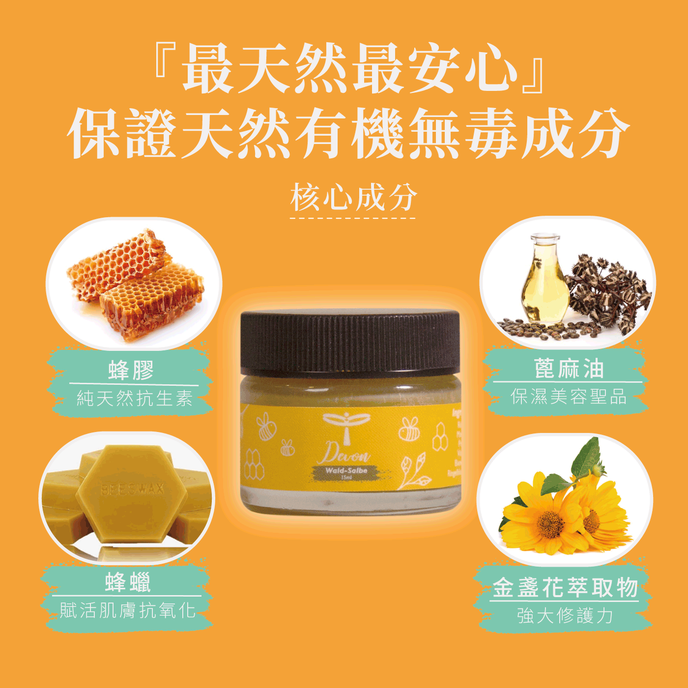⭐秀秀蜂膠膏以天然蜂膠、蜂蠟為主要成份,結合蓖蔴油及金盞花萃取物,具有修復更新能力,保濕活化肌膚⭐