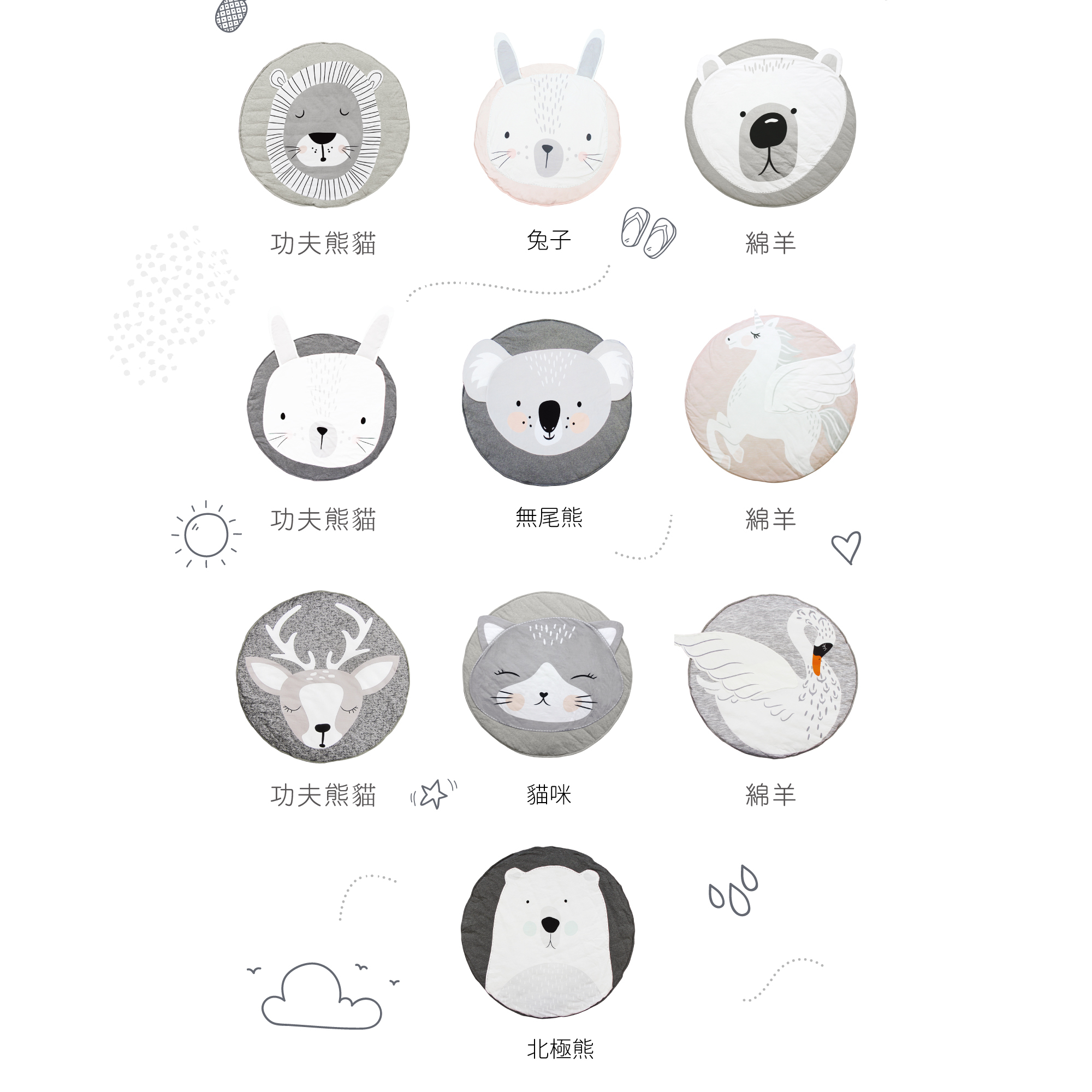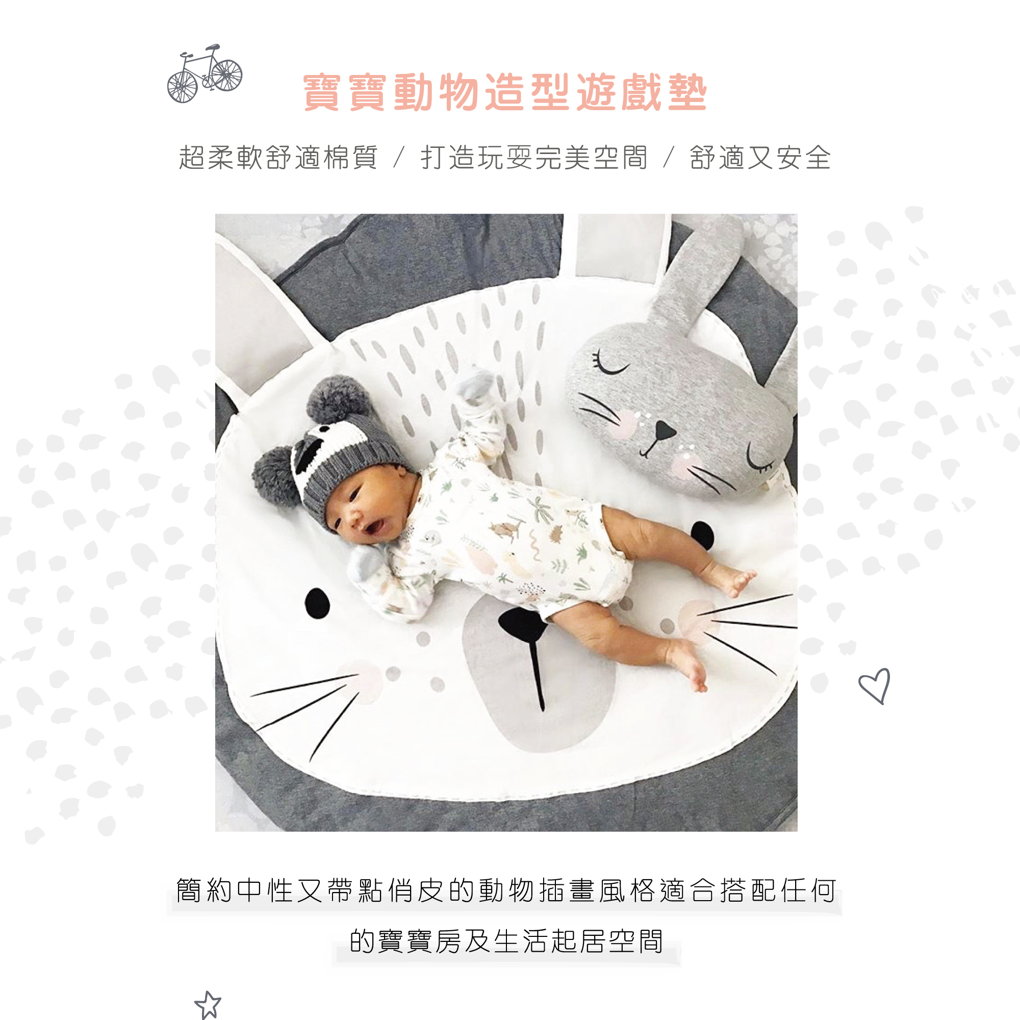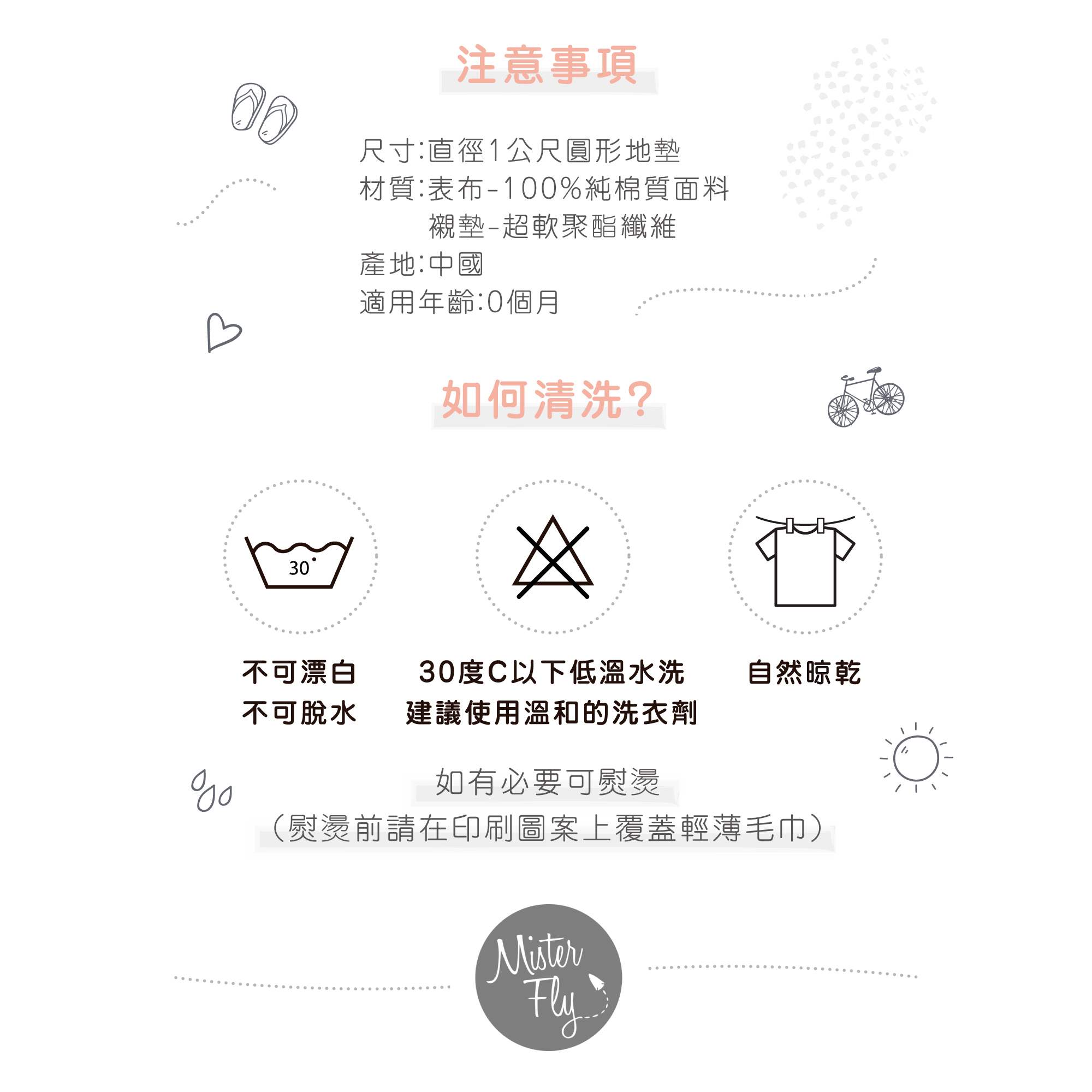 • 材質:表布-100%純棉質面料 襯墊-超軟聚酯纖維
